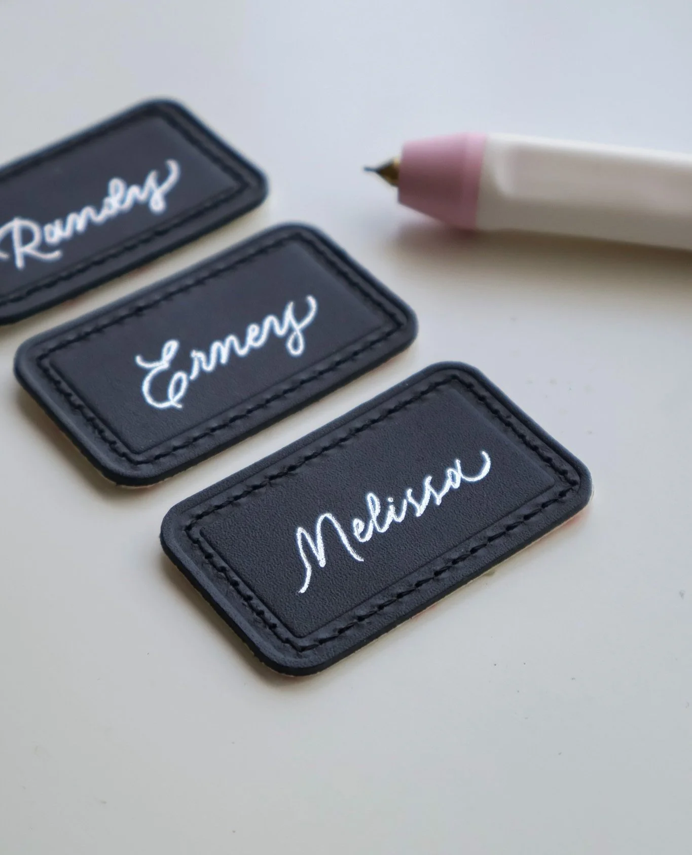 Using dainty needles and threads, adding a unique texture with personal touch to a simple keepsake, a permanent alternative to execute personalisation on fabric products.